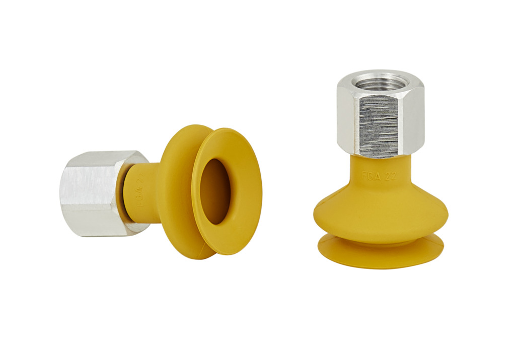 Bellows suction cup (round) with optimal adaptation to uneven surfaces