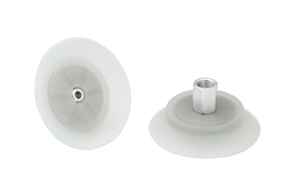 Flat suction cup (round) for process safe handling of smooth or slightly rough surfaces