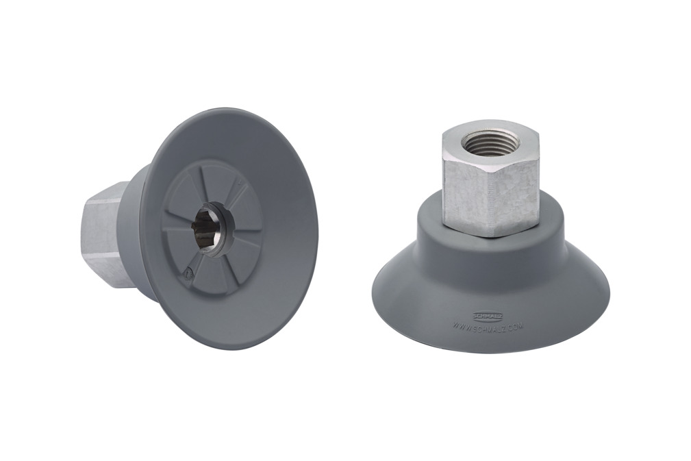 Flat suction cup (round) for process safe handling of smooth or slightly rough surfaces