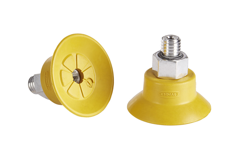 Flat suction cup (round) for process safe handling of smooth or slightly rough surfaces