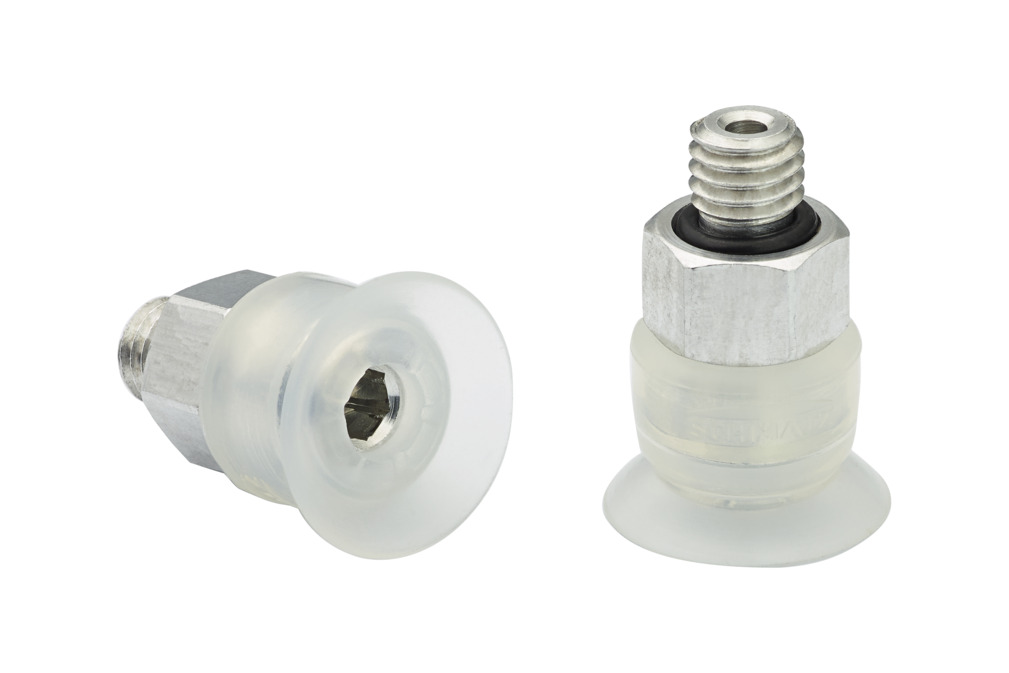 Flat suction cup (round) for process safe handling of smooth or slightly rough surfaces