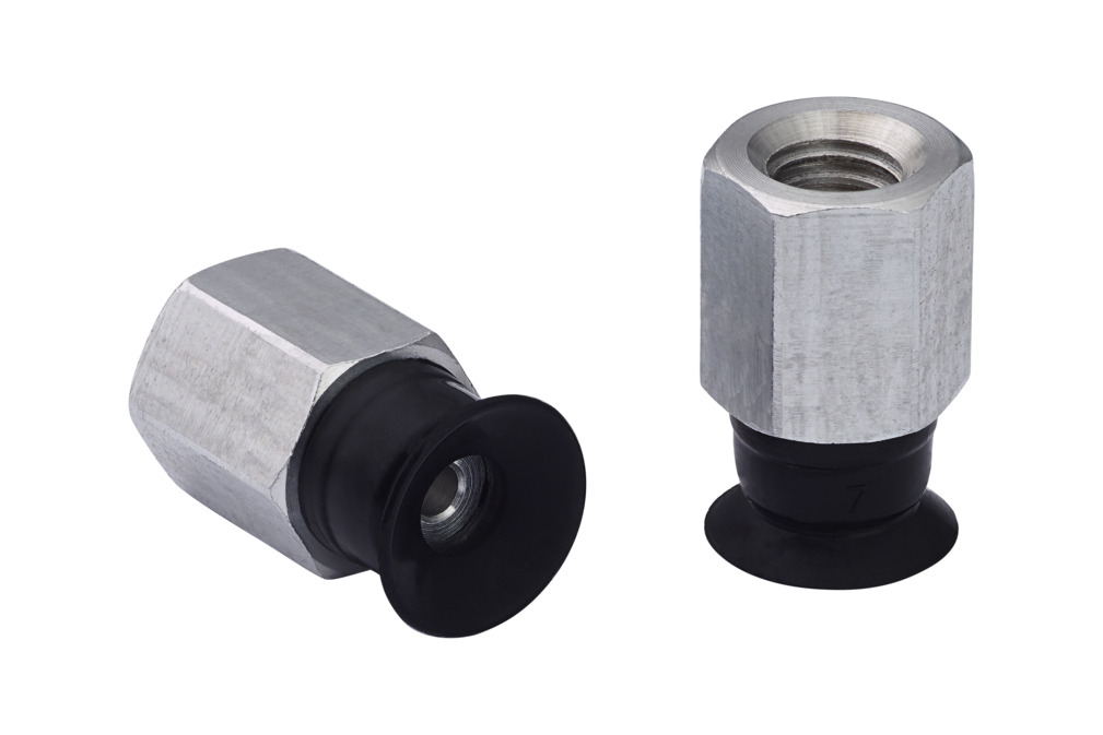 Flat suction cup (round) for process safe handling of smooth or slightly rough surfaces
