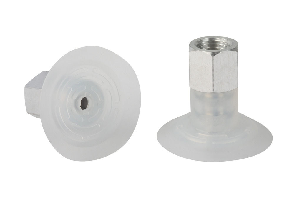 Flat suction cup (round) for careful gripping of paper, plastic film, etc.
