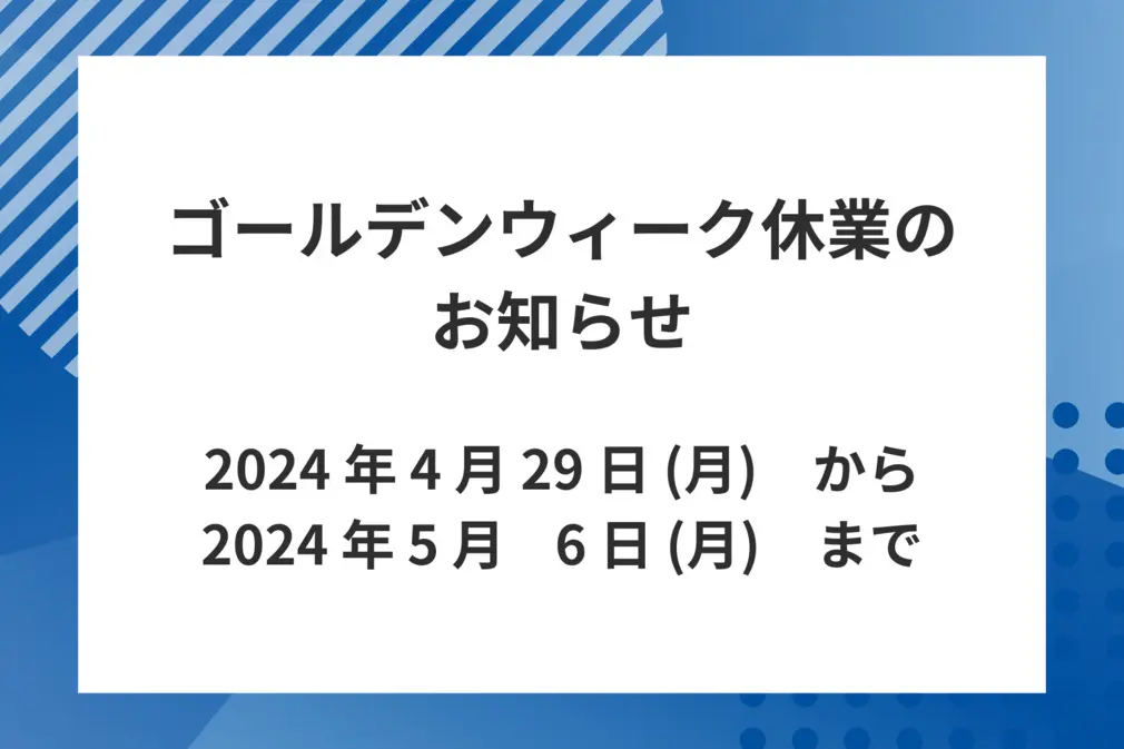 2024年4月29日(月)~5月6日(月)までをゴールデンウィーク休業とさせていただきます。