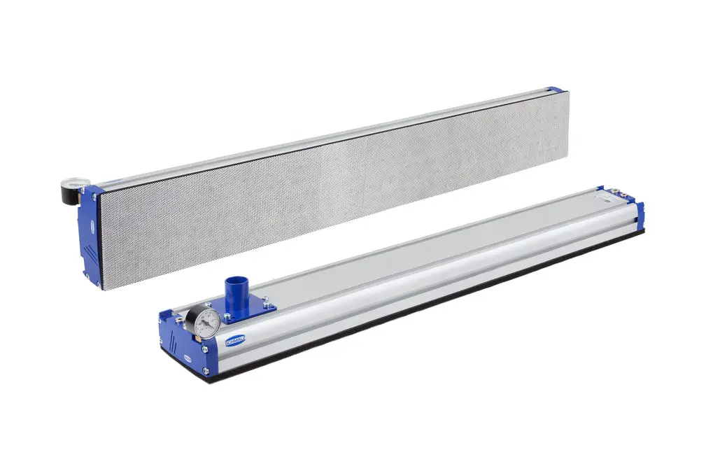 非常に繊細なコーティングがされているガラス表面の吸着搬送に適した汎用真空グリッパーシステムです。吸着面にスポンジとマークレスシート SUを使用し、ワーク表面の汚染や傷を防止します。